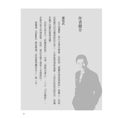 相關著作:《機會命運請選擇—謝震武寫給年輕人的簡明成功學﹝全新封面﹞》《說出好人緣--謝震武的獨門說話術》