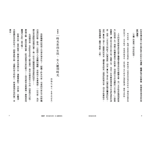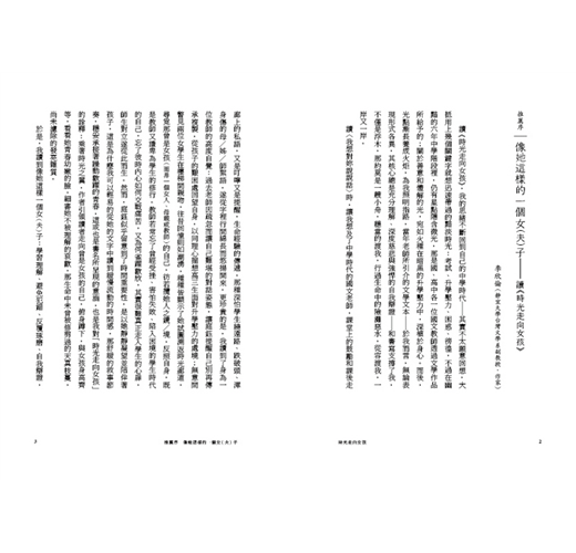 【推薦序1】 像她這樣的一個女(夫)子──讀《時光走向女孩》 ◎李欣倫(靜宜大學台灣文學系副教授.作家) 讀《時光走向女孩》,我的思緒不斷回到自己的中學時代──其實不太願意回想,大抵用上幾個關鍵字就想迅速帶過的黯淡時光:考試、升學壓力、困惑、徬徨,不過在幽黯的六年中學階段裡,仍有星點隱含微光,那是國、高中各一位國文教師透過文學作品所給予的;關於善意和體解的光,宛如火種在暗黑的升學壓力中,深植於身心。而後,光點漸長養成火炬,為我照明指路,當年老師所引介的文學文本──於我而言,無論表現形式各異,其核...