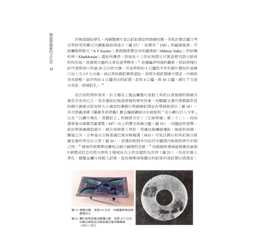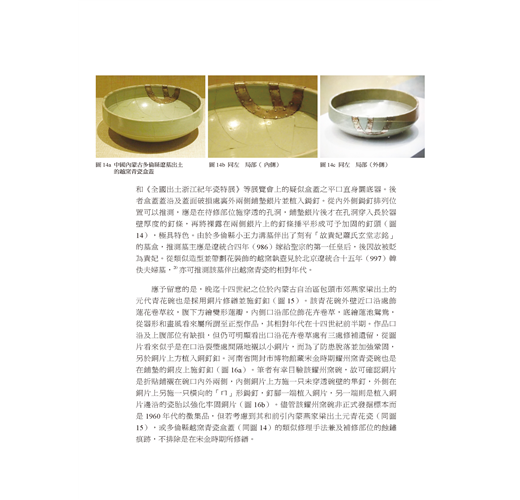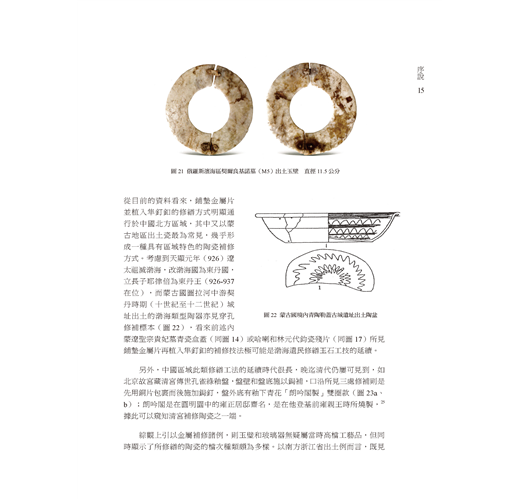 眾所周知,西方人稱「瓷器」為「CHINA」,是因緣於中國夙以燒瓷聞名,並且大量外銷。這個歷史悠久的國家同時遺存有豐富的文獻資料,若結合近半個世紀以來其活躍的田野考古發掘工作,將可提供我們管窺此一國度對於陶瓷補修的諸方式,甚至可據此評估採用特定修補術背後的文化意涵。