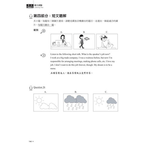 並附聽力測驗各題錄音腳本,幫助找出聽力盲點!