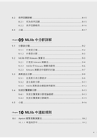■第6~12章每章是一個MLlib分支部分,其將MLlib各個資料採擷演算法分別做了應用描述,介紹了其基本原理和學科背景,示範了使用方法和範例,對每個資料做了詳細的分析。並且在一些較為重要的程式碼上,作者深入MLlib原始程式,研究了其建置方法和參數設計,進一步幫助讀者更深入地瞭解MLlib,也為將來讀者撰寫自有的MLlib程式奠定了基礎。