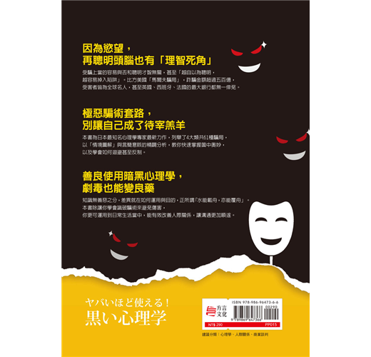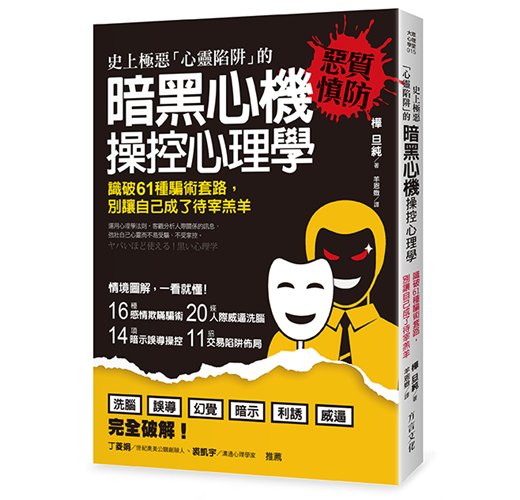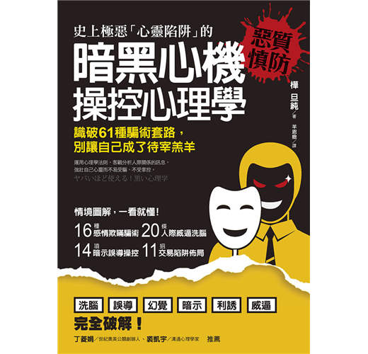 《暗黑心機操控心理學》完整披露惡質詐騙手法與佈局陷阱,讓你學會預先識破,進而自我保護不傷害,另一方面更能聰明運用到工作或職場日常生活當中。