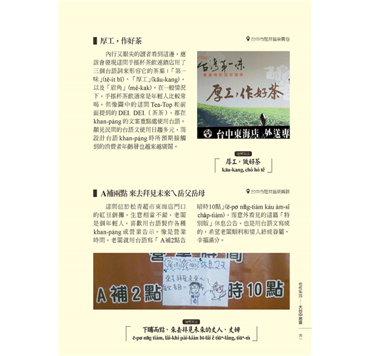 Hoa-lian Tang-hôa Tāi-ha̍k Tâi-oân bûn-hòa hē kàu-siū. Hoat-piáu kòe ê Tài-gî siong-koan lūn-bûn, ū “Hybrid Localization and Ethnic Markers? A Preliminary Inquiry into the Hokkien Written Inscription of Stele and Deity Tablets around Taiping, Malaysia” (2012), “Field Report: Leiden tāi-ha̍k Tang-a tô͘-su-koán siu-chông ê lán-lâng-ōe chu-liāu” (2013), “From Hokkien to Mandarin? the changing geography of written scripts for the deity of Na Tuk Kong among the Hokkien descendants of the Northern Malay Peninsula” (2014), “Article Review: Jean-François Dupré, “In Search of Linguistic Identities in Taiwan: an Empirical Study” (2017) téng-téng.