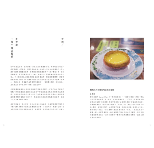 名人推薦:「他對茶葉及奶茶的特性瞭若指掌,曾有移民外地的夫婦特意回港向他學習,然後把大包小包的工具、茶葉帶到外地, 在異鄉繼續享受家的味道。為了籌備此書, 謝師傅走訪港、九、新界,務求為讀者介紹最全面的港式奶茶文化。希望大家都能感受到謝師傅的心思,一起把港式奶茶的情延續下去。」——華星冰室老闆之一 彭懷安( Ed d i e )
