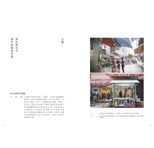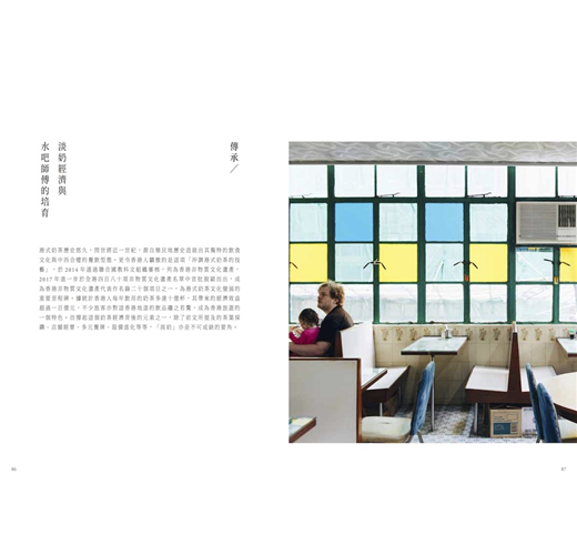 然而,新派冰室的風貌跟老派的茶餐廳可謂大相徑庭,例如現時的餐牌花樣菜式愈趨多元,中西星馬泰日韓皆有,而營業時間更由黃昏延長至晚上(部分更是二十四小時營業)。這些演進不就反映當下香港的飲食文化脈搏嗎?餐牌多元,正好印證香港人的生活哲學──「最緊要有得揀」(揀的意思為「選擇」);通宵營運,則既顯示香港人喜歡夜生活,也同時反映地方租金高昂,店家非得延長營業時間來提升營業額,這也是搭枱文化產生的原因之一。我們也觀察到不少食物悄然退隱時代舞台,如蓮子冰、鳳凰奶糊、保衛爾牛肉茶及奶水蛋(煉奶+水+生雞蛋),溯其原因,有的過於費工費時,有的則為在地人之口味迭變,細看即能理順箇中演變之邏輯。