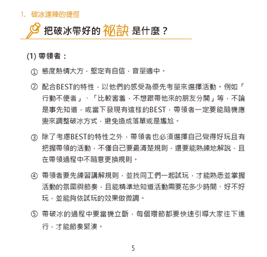 1. 成功帶出一個節奏緊湊的好玩破冰