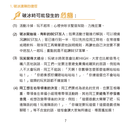 在幸福小組中帶出一個好破冰,不僅能拉近人跟人的距離,更能成為進入信息的橋樑。