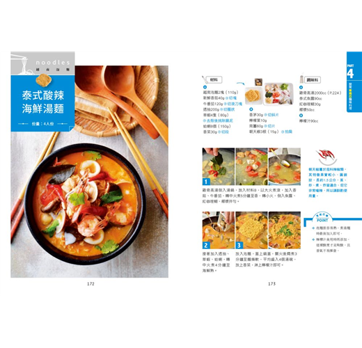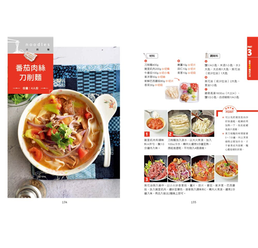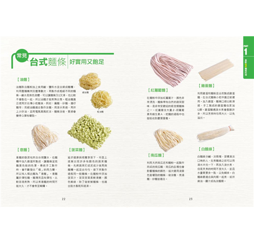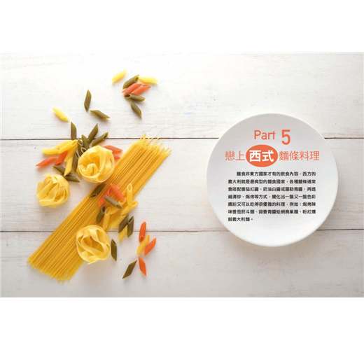 收錄台式、日式、中式、東南亞、西式共102道麵食料理,
