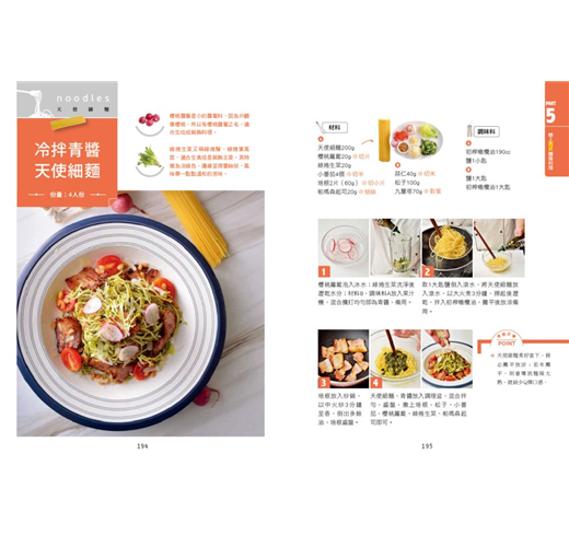 在忙碌的生活中,大家對於吃的內容越來越講究,但又不希望花太多時間製作繁瑣的菜餚,於是麵食料理成為最方便的選擇,能飽足且滿足味蕾,更不需要掏米、浸泡、炊煮等待,10分鐘內就可以烹調完成色、香、味皆到位佳餚,本書可以讓不愛麵食的朋友喜歡,讓愛好麵食的朋友更驚喜麵條多樣風貌。