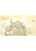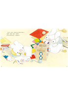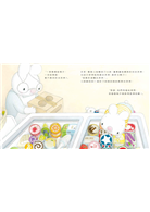 ★畫面構圖安排頗具巧思,小兔子就在商店的某個角落躲躲藏藏……讓這本書增添了找找看、尋寶般的樂趣。