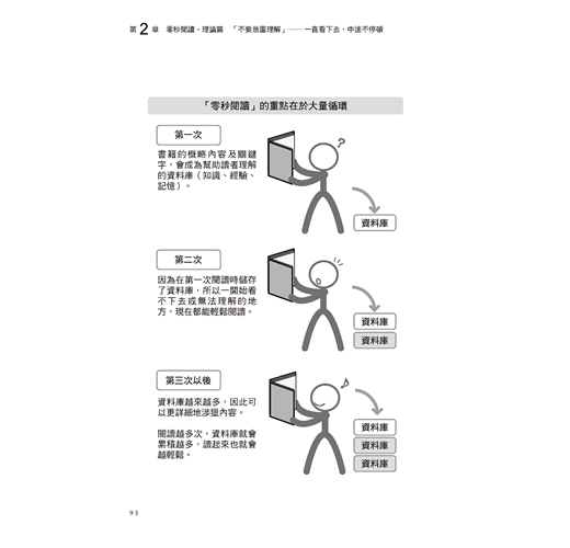 零秒速讀法,藉由跳躍式閱讀,看不懂的地方先跳過,因此不會佔據工作記憶,