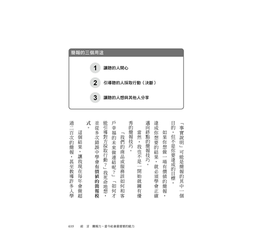 當然,我也視這本書為一次簡報。換句話說,當你讀完此書,我認為你將得到以下「三個結果」。