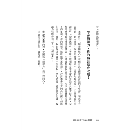 如果你不太能接受前面兩段話,請務必踏上《最強表達高手的攻心簡報術》的閱讀征途。