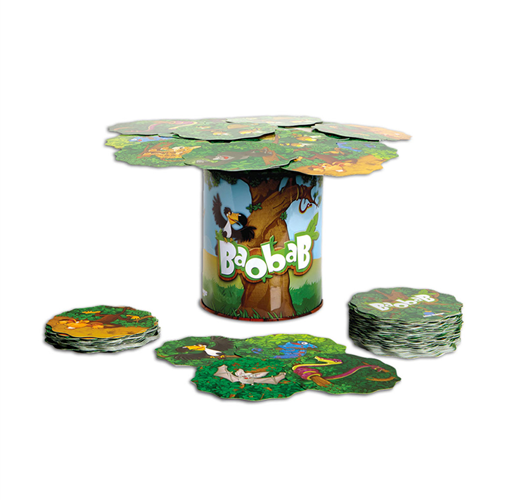 《非洲神木》的情境取材自非洲的巴歐巴樹(Baobab),各種不同的動物生活其中。特殊外盒設計,同時兼具收納與遊戲配件的功能。遊戲牌包含葉子、花以及七種不同的動物,玩家要依據規則成功的將牌卡擺放到樹上。擺放規則依據動物的特性設計,例如:大嘴鳥牌要像丟飛盤一樣丟到樹上、蝙蝠牌要閉著眼睛擺放…規則容易理解且充滿趣味。遊戲過程刺激又歡樂,適合大人、小孩一起玩。