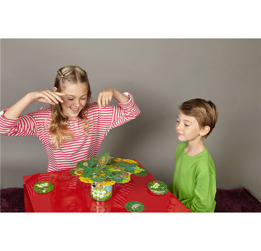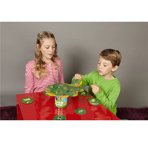 豹跳上樹頂、蝙蝠盲眼飛行、猴子掛在枝幹…玩家要想辦法依規則將所有牌卡放上神木,但小心,不能讓牌卡掉落,同時還要避開蜜蜂的攻擊!