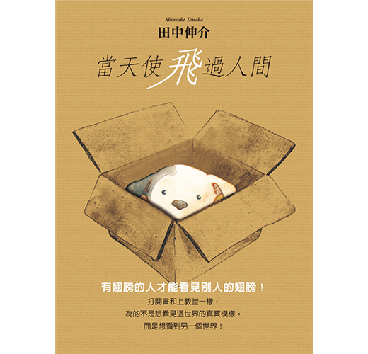 《當天使飛過人間》是田中伸介第一本無字圖畫書,2001年在台灣出版後,即熱賣超過五萬本,感動了許多讀者。曾經賣到絕版,今年我們重新出版,換上新包裝,設計靈感取自書中的插畫「紙箱裡的小狗」。我們把書盒設計成紙箱質感,希望讀者打開書盒,就像老農夫與狗相遇,你與故事的緣分即將展開,這本書將帶你細細品味一段動人的故事。