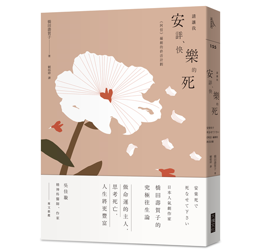 現年93歲的橋田壽賀子作品,可以說是台灣人最熟知的日本電視劇,執筆超過50年的她,曾寫出《阿信》、《鄰居的草坪》、《冷暖人間》等膾炙人口的名作,擅長描寫家庭、人與人之間複雜的情感糾葛,累積逾百部作品,曾獲頒紫綬褒章、文化功勞者等重要獎項。不過,這位大名鼎鼎的編劇卻在2013年宣布自己打算引退,積極展開她的「終活計畫」,2016年更寫作一文「我想安樂死」,引起日本對安樂死的熱議,讓她獲頒該年讀者大賞。2017年寫作的本書,更以個人生命經驗、哲學思考、人權角度,倡議安樂死的合法。