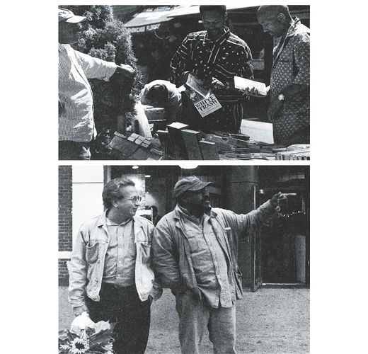 當我身在這個網絡中,各種接觸及介紹發生在各式各樣的場域。結果,我成為一名助手——街販離開時幫他們看管貨品、他們不在時買下別人帶來的貨、在垃圾堆與資源回收桶間展開拾荒作業時提供協助,以及「喝杯咖啡去」。然後,我在一九九六年夏季成為全職的雜誌販售者及拾荒者,在一九九七年夏季及部分秋季則是每週三天做這樣的工作。到了一九九八年夏季,我每天都會到這些街區看看,每次通常待幾個小時。在一九九九年三月,當時研究已近尾聲,我做了兩週的全職販賣者。
