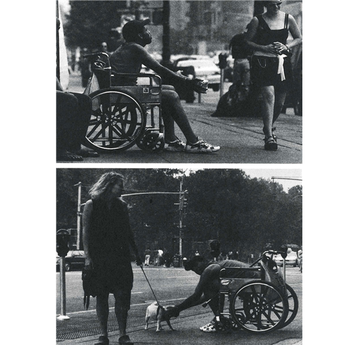為了解人行道生活在今時今日如何運作,我一開始先檢視在這個中上階級街區的人行道上工作且/或生活的貧窮(主要是)黑人男性。不像在紐澤西擁有公寓的哈金,如以實瑪.沃克這樣的雜誌小販是沒有家的;當他想透透氣而離開該街區時,警察會把他的貨品、擺攤用的桌子、衣服、家人的照片都扔到垃圾車裡。墨瑞.海耶以及垃圾喬把(從垃圾中找出的)東西攤在地上販賣,以賺取維生的錢。坐在輪椅上的基斯.強森則在自動提款機出口門旁乞討。