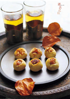 ・「什錦果實蒸羊羹」的栗子、芝麻香氣四溢,搭配紅葡萄酒讓你品嚐秋季風情。