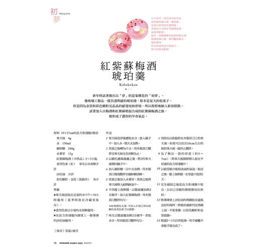 全書以四季風情分為4章,一共介紹34款新感覺和菓子。