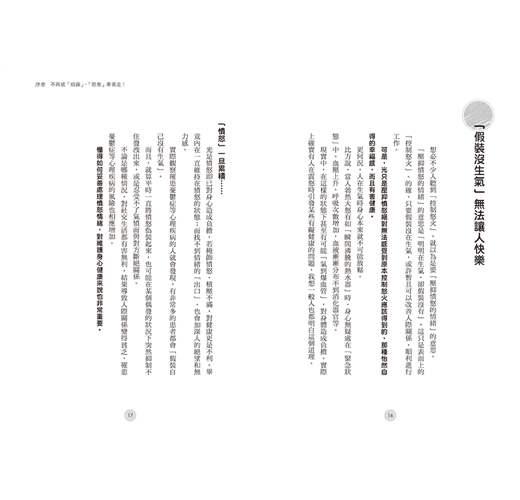正文中會繼續為各位詳細說明;我是專門研究「人際心理治療」的精神科醫師,治療過無數的患者,從那些經驗中我可以肯定地告訴各位一個結論,就是如何處理「憤怒」的情緒,會決定一個人的心理健康和人際關係的品質,甚至是生命的品質。