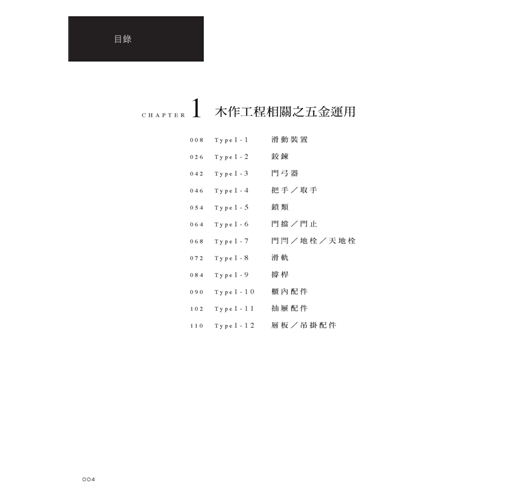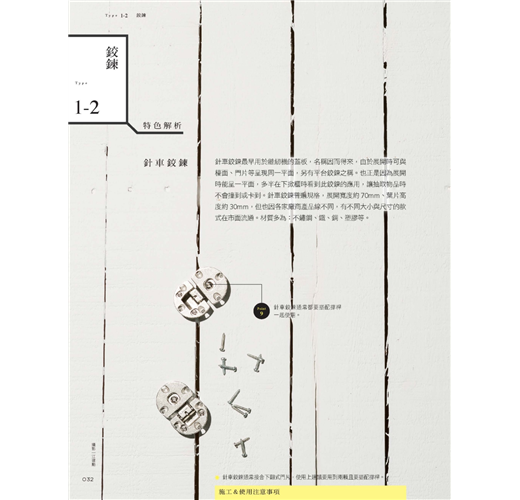 ★ 應用必知:21項五金種類,教讀者如何選擇適合的五金,豐富資訊一次給足。