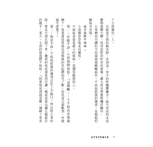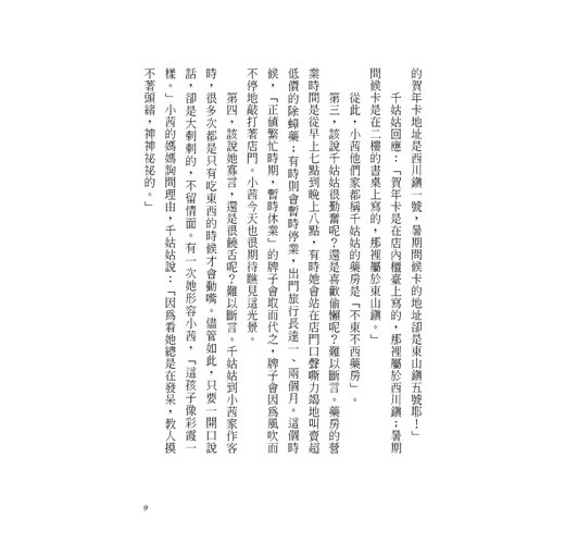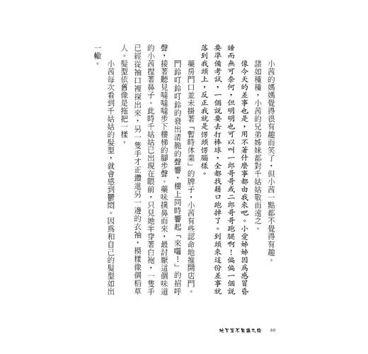 小茜也是第一次走進千姑姑的房間,忍不住東張西望。偶爾來不東不西藥房時,都是待在樓下店裡,辦完事後就急忙地逃回家。