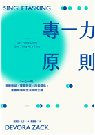 如果你有以上症狀,也許你該想想,自己是否陷入一心多用的迷思,被這種流行、誘人又看似美好的做事方法灌了迷湯,才會既沒時間、缺乏效率、失去活力。真相是,一次專注做好一件事,你反而可以完成更多的工作,還可以好好睡上一覺。戴芙拉.札克將教你如何讓工作更有效率,減少分心情況;教你如何處在當下,活出創意的心流狀態,停止混亂的生活。