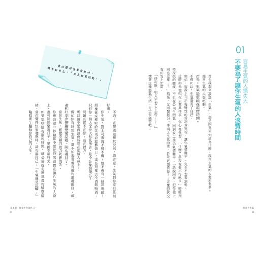 因此,若想活得自我,就必須先學會處理自己的情緒。整理好自己的負面情緒,沒有想像中困難,你可以根據本書的101種方法,慢慢練習放下生氣的情緒,你會發現──