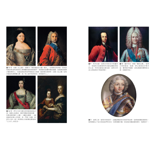 在本書中,我們會瞻仰彼得大帝的明君形象,如何推行西化,將俄國發展成歐陸強國,但也會目睹彼得大帝如何殘忍地將兒子折磨至死。我們會讚嘆葉卡捷琳娜大帝光輝燦爛的統治生涯,也會耳聞她諱莫如深的宮廷醜聞。就如作者所言,這不是一本俄國全史、政治史、經濟史或軍事史的專書,它記述的是羅曼諾夫王朝的家族史,它描寫的是人性的光明與陰暗、高潔與低劣,這是一部關於父母與兒女、天才與庸才、聖人與怪物的王朝編年史。
