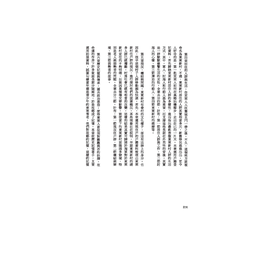 第五章現況、癥結與問題。本章運用現住戶的戶籍資料梳理出東萊新村住戶群的現況,進行探討他們的就業概況。
