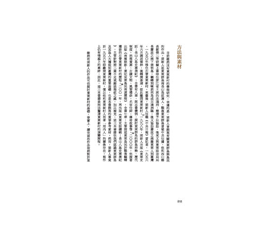 特殊人群在特別的歷史空間所建立的村落,勢必有其某種的時代意義,他們來臺的歷程以及在臺發展的故事不應該被埋沒。在此理念之下,本書試圖在「空間與人」的觀照面下,探討村落變遷與人群的故事和文化。以下先簡要回顧相關研究,指出不足之處,再提出本書所採行的方法和素材,最後概述全書重點。