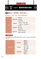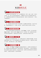 所有章節的安排都按照相同的思路,均包括Step 1:先來個自我測驗,找出你的盲點;Step 2:從圖表中掌握文法重點;Step 3:難度提升,高手再挑戰。各章學習、循序漸進,三點不漏,能從易到難,掌握文法要點。