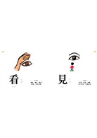 2. 當孩子看讀反應越來越快速時,家長可試著遮住圖像部分,測試孩子的認字能力。如果碰到無法單獨辨認的字時,家長可指著文字部分來提示該圖形的特色,孩子便能很快地記憶起來。