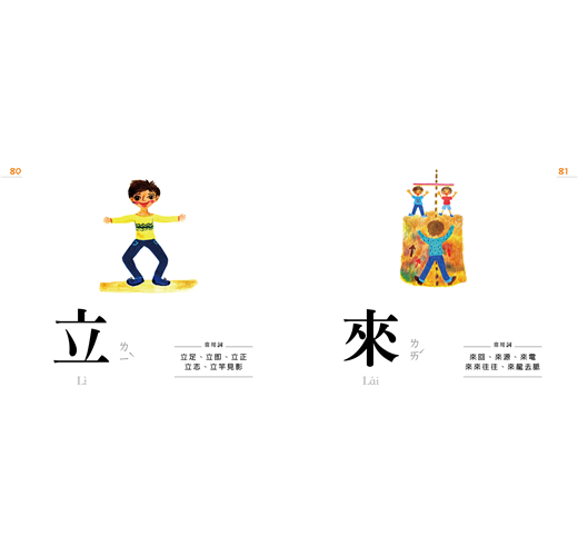 孩子看著圖片竟然馬上就可以聯想到是什麼國字,不太需要另外解釋,甚至還能自己聯想另外的詞語,認國字變成一件好玩又有趣的事情,連媽媽看到感覺文字都活了起來,非常棒的一本書!