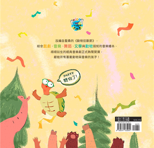 佳伶老師繪本花園.蔡佳伶老師《動物狂歡節》是法國作曲家聖桑用各種樂器模擬動物的聲音和姿態,以幽默風趣、帶點譏誚的手法來描寫,由14首小品樂曲組成,每個樂章都能夠聽到當中有趣的故事,在段落中也充滿獨奏樂器的個性,相當適合拿來認識樂器呢!