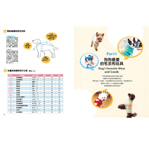 本書是以小型室內犬為主角,用棒針或鉤針編織31款狗狗最愛的編織作品,包括愛犬秋冬必備暖暖衣、愛不釋手玩具,以及散步提袋、毛線墊等實用生活用品。書中的編織衣物,不管是背心、洋裝、連帽毛衣,都是用簡單的平面編織、圖案編織、條紋圖案和阿蘭圖案等完成,織法簡單且款式新穎、時尚。