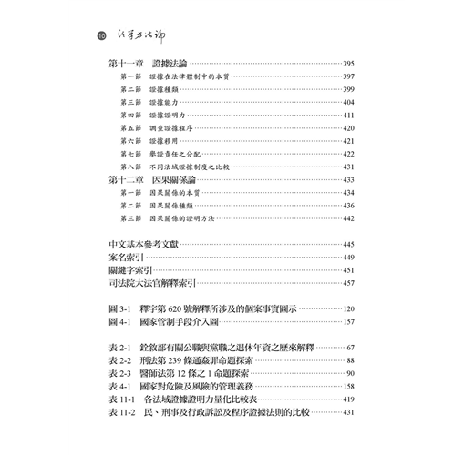 表11-2 民、刑事及行政訴訟及程序證據法則的比較 431