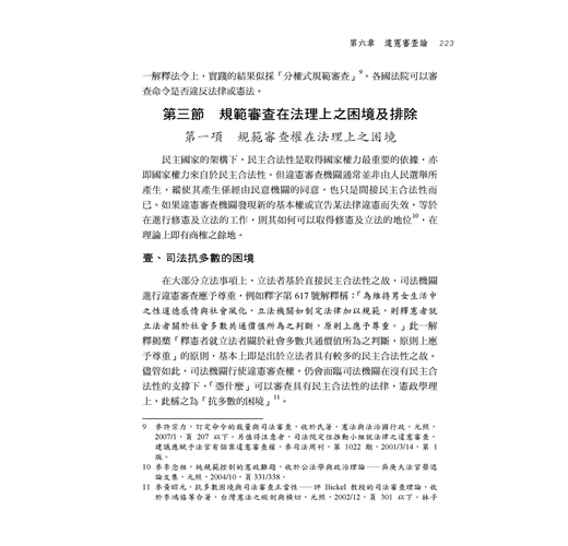 第三節 規範審查在法理上之困境及排除 223