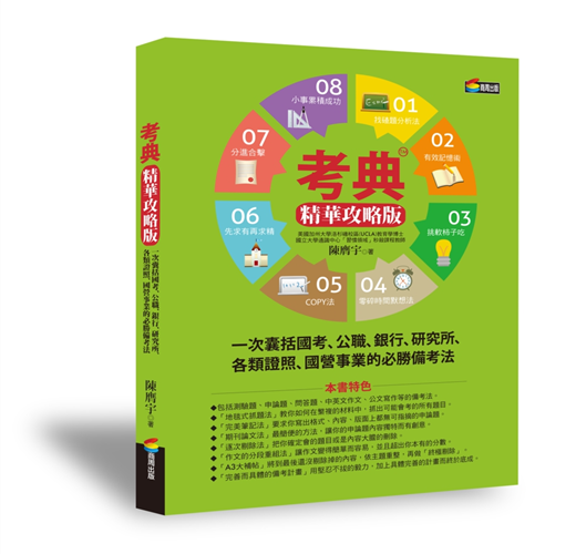 相關著作:《考典2:國考、公職、銀行、研究所、各類證照、國營事業必勝全攻略》《考典:一次考上國考、公職、銀行、各類證照、國營事業、研究所的萬用備考法》