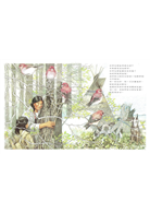 ※本書圖像融合水彩和鋼筆兩種技法,以寫實細膩的筆觸繪出人物山水和動物的寫實感,多層次堆疊的人物、動植物和背景令讀者游移在真實與夢幻間,更掌握了大自然多樣、繁複且和諧的美感。