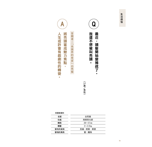 這是一本別開生面的煩惱諮詢書。在本書中,各式各樣的生物將會設身處地,解決人類所抱持的煩惱。