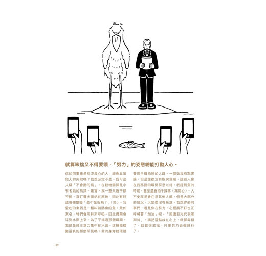 總是全力以赴的鸛鳥說:「就把周遭的目光統統當成加油吧!」