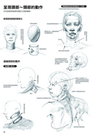強壯的頸部來自於頸部肌肉的描繪方式。呈現胸鎖乳突肌在頸部形成的肌肉線條,表現出形狀與動作。