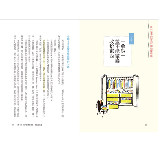 【特色4】照片說明、搭配可愛插圖,讓你對斷捨離生活的實踐一目瞭然!每張照片都清楚標示了作者的思考點和處理方法,每個生活習慣和先後次序,也都一一用讓人放鬆閱讀的插畫呈現,把斷捨離大師的生活面貌完整公開在你眼前。運用圖像記憶,不需要死記書本內容,你也可以輕鬆跟著在生活中實踐出來。
