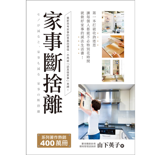 「斷絕」不必要的東西→「捨棄」多餘的雜物→反覆執行「斷」與「捨」,「脫離」對物品的執著。家事斷捨離,要丟的不再只是物品,而是你腦中對家事的「刻板印象」。