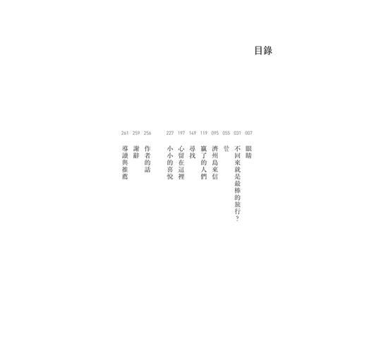 那天,是我第一次搭乘從仁川開往濟州島的客輪,雖然曾搭飛機到濟州島出差過兩次,但這是第一次載著相關物品從仁川沿岸碼頭出發。先簡單介紹一下我的職業,我是廣告招牌設計安裝公司的員工,我不負責設計,但負責在大樓內外安裝招牌的工作已經將近十年,那天去濟州島也是為了安裝招牌。設計好的新招牌放在車上,幫忙安裝的人力也正在濟州島待命。客輪從仁川出發的時間整整晚了兩個小時,也就是到晚上九點船才出港,現在船又在珍島附近不走了,看這情況,上午在濟州島的安裝作業是無法進行了。我只要心裡著急時就會想抽菸,加上還要打電話回報公司,於是又朝右舷甲板走去。經過走廊時,我看到有些學生從客艙探出頭來,也有學生乾脆走出來、站在走廊上。廣播再次傳出「待在原地不要走動」的指示,學生們雖然皺著眉頭,但還是聽話照做。