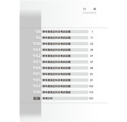 「知己知彼,才能百戰百勝」,熟練歷屆試題,真實模擬演練,絕對有加分的效果!