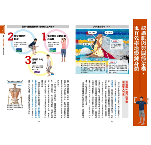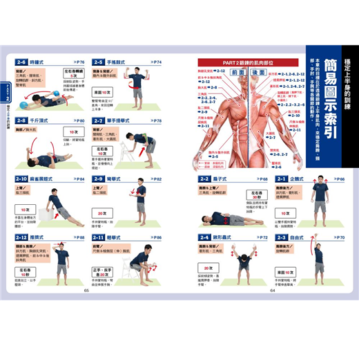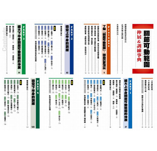 書中以【擴大活動範圍➜穩定關節作】、【上半身➜下半身】區分章節。